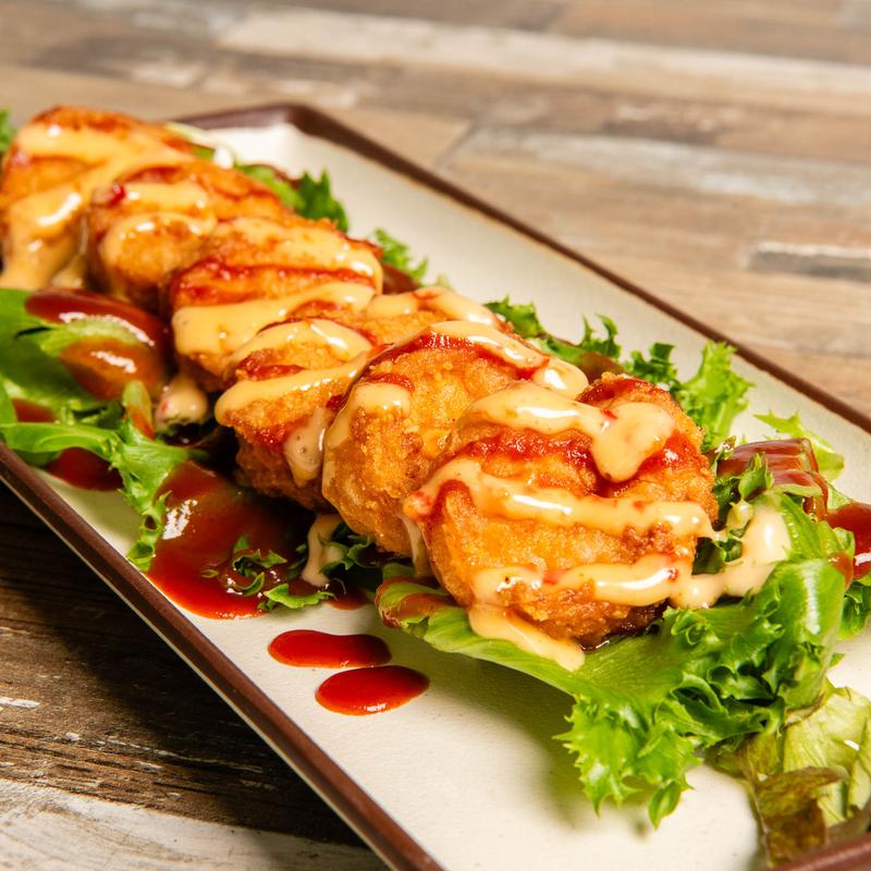 Crispy jumbo shrimp drizzled with bang bang sauce.